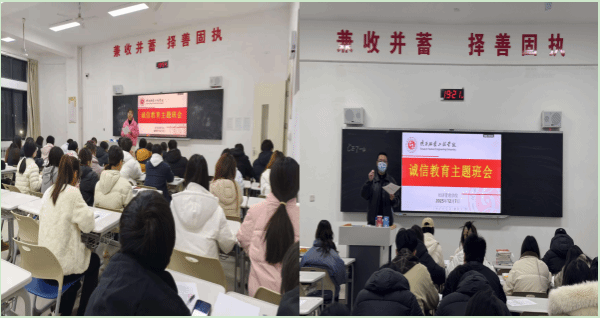 为增强学生诚信意识,严肃考风考纪,筑牢学生道德根基,营造崇信践诺的校园氛围,12月7日——8日,我院以“诚信教育月”为契机,组织全院各班级召开诚信教育主题班会,让诚信理念浸润青春心田。班会形式丰富多元、亮点纷呈。各班级通过剖析学术不端与考试作弊典型案例、分享古今诚信故事等形式,直观展现诚信的时代价值与失信的严重后果。在互动研讨环节,同学们围绕学业诚信、人际交往、网络言行、就业承诺等话题热烈交流,结合专业学习探讨诚信在科创实践、...