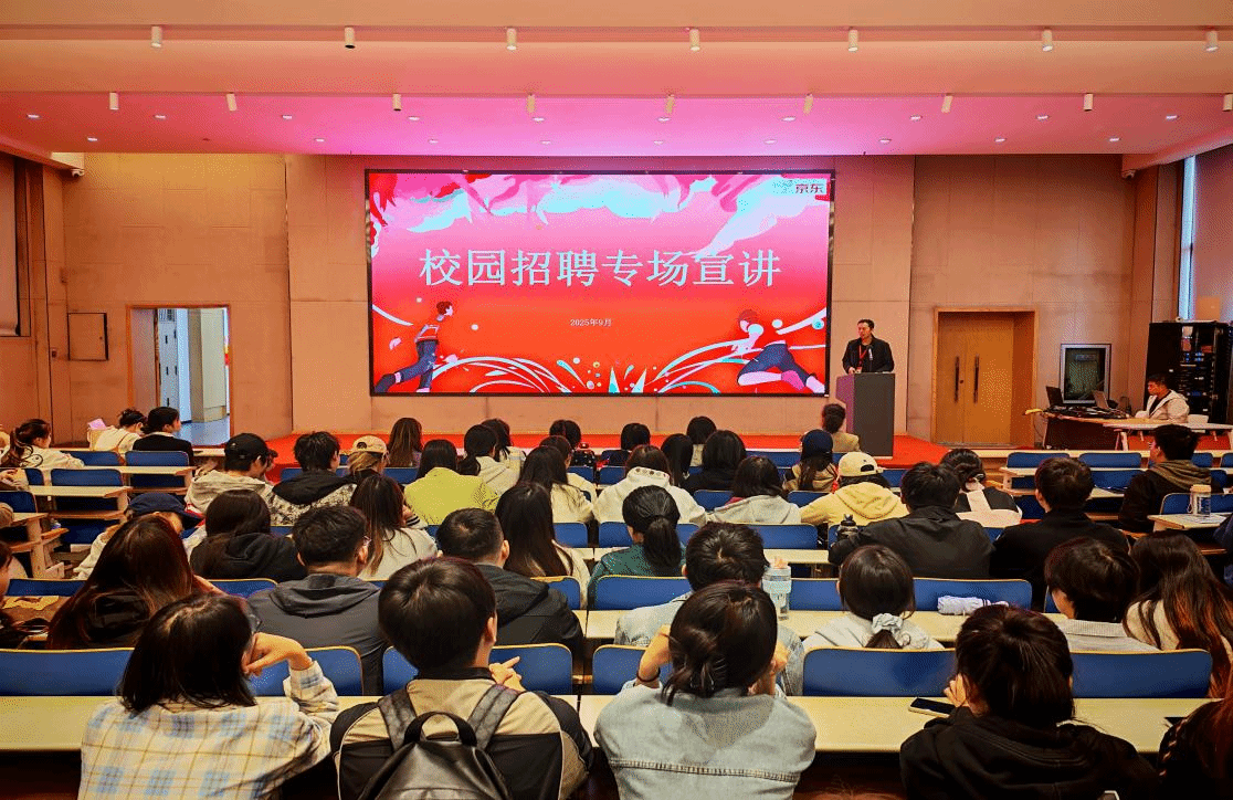 为帮助我院2026届毕业生更好地了解就业形势,搭建优质就业平台,助力他们顺利开启职业生涯新篇章。9月23日下午,我院在E1–4召开2026届毕业生就业动员暨首场宣讲会。京东集团校企合作部西北区负责人白光泽、副院长来燕、党委副书记王韬慧、团委副书记庆昱宇、毕业班辅导员王雪柔及2026届全体毕业生参加会议。