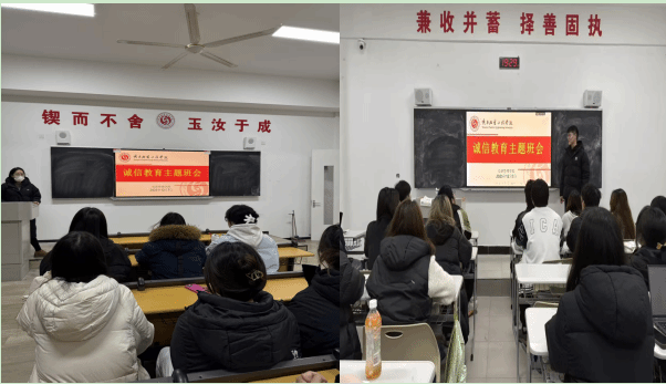 为增强学生诚信意识,严肃考风考纪,筑牢学生道德根基,营造崇信践诺的校园氛围,12月7日——8日,我院以“诚信教育月”为契机,组织全院各班级召开诚信教育主题班会,让诚信理念浸润青春心田。