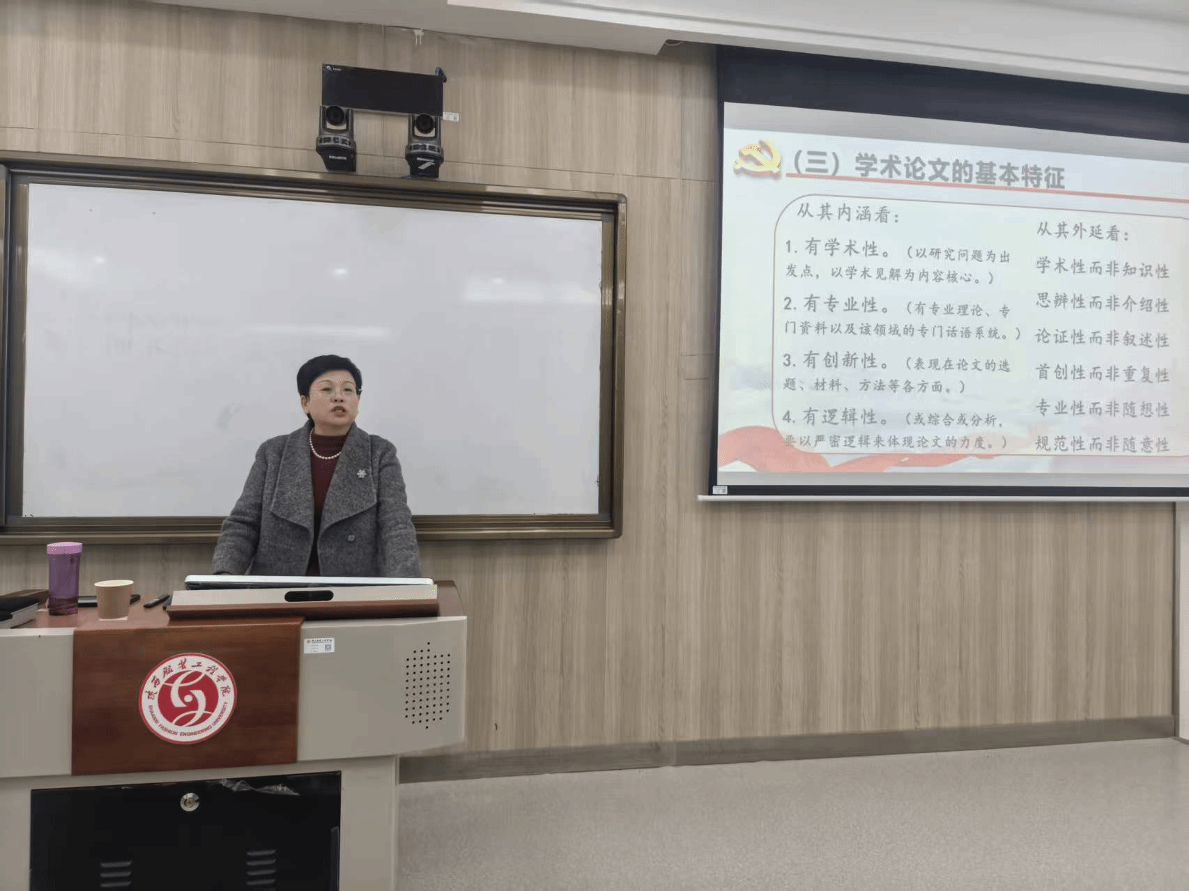为助力教师提升学术研究与论文写作能力,破解学术论文发表难题,12月10日下午3点,我院在B209教室举办学术论文写作专题讲座。本次讲座特别邀请《陕西理工大学学报(社科版)》主编刘英担任主讲人,学院全体无课教师参加讲座。