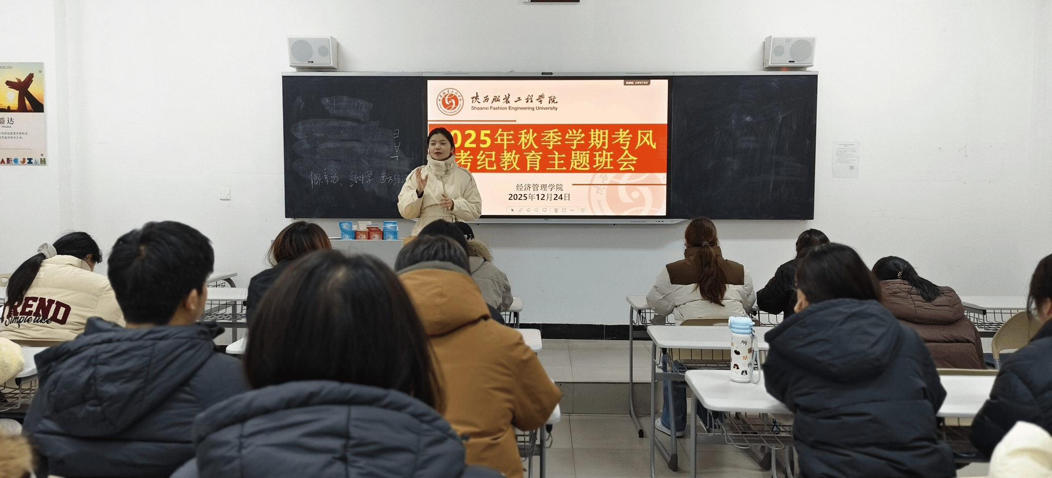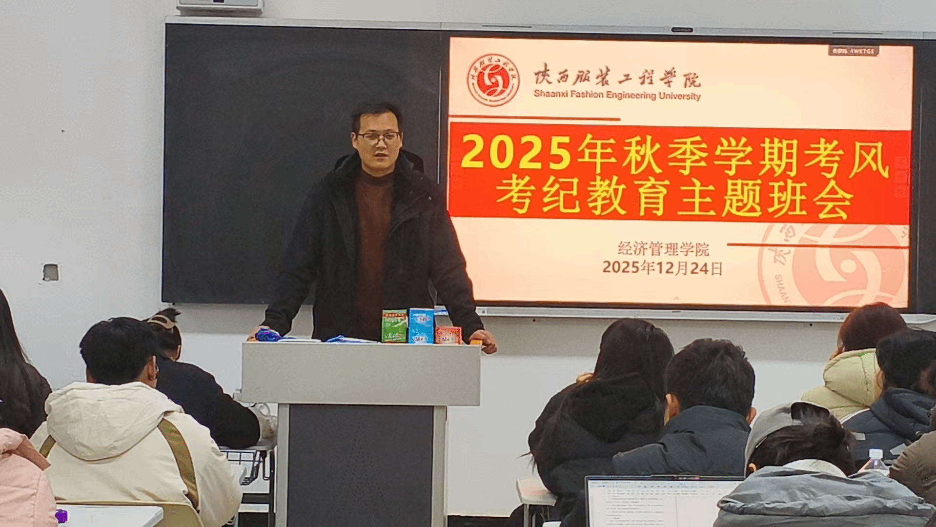期末考季临近,为强化我院学生诚信应考意识,营造公平公正的考试环境,筑牢期末学风建设防线,12月23日至24日,我院各班级召开考风考纪教育主题班会,覆盖所有考试的学生。
