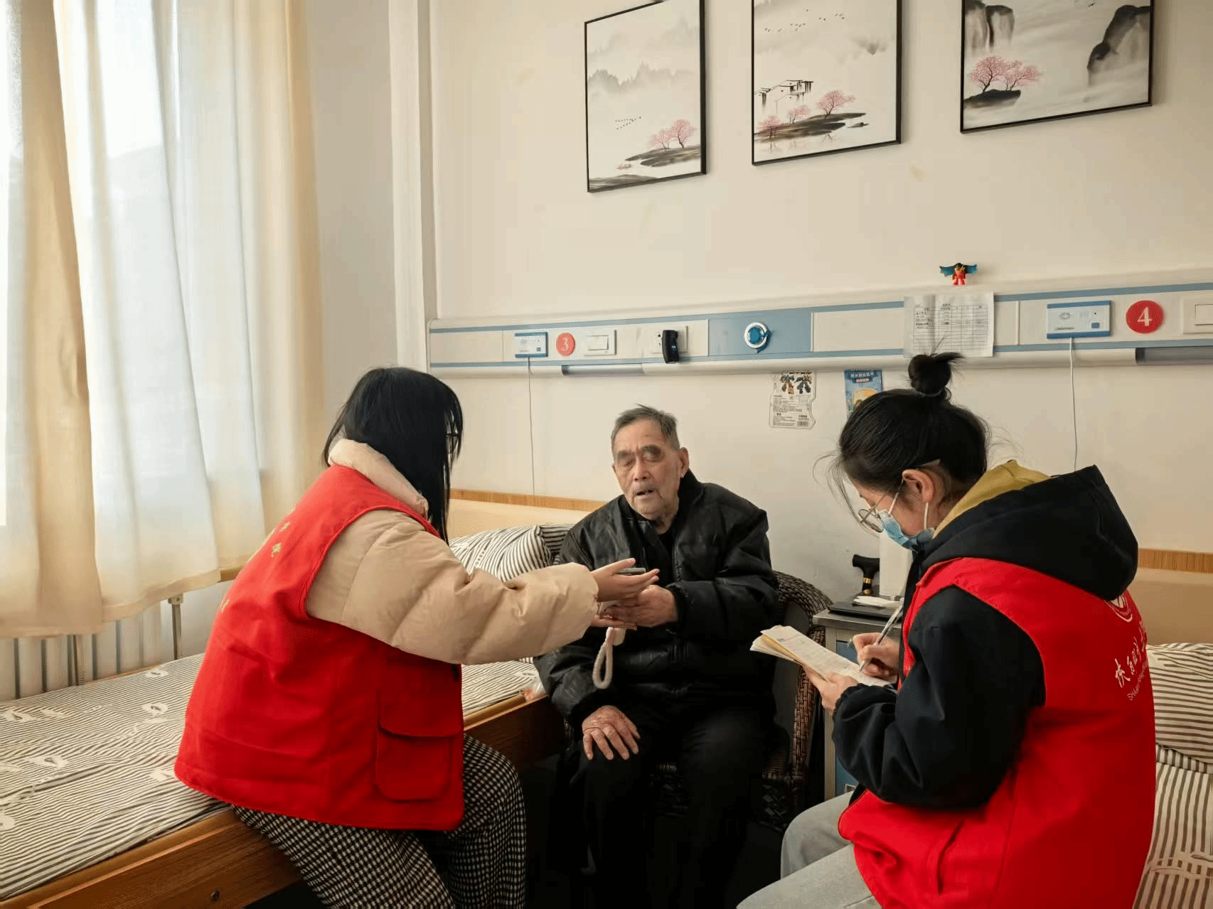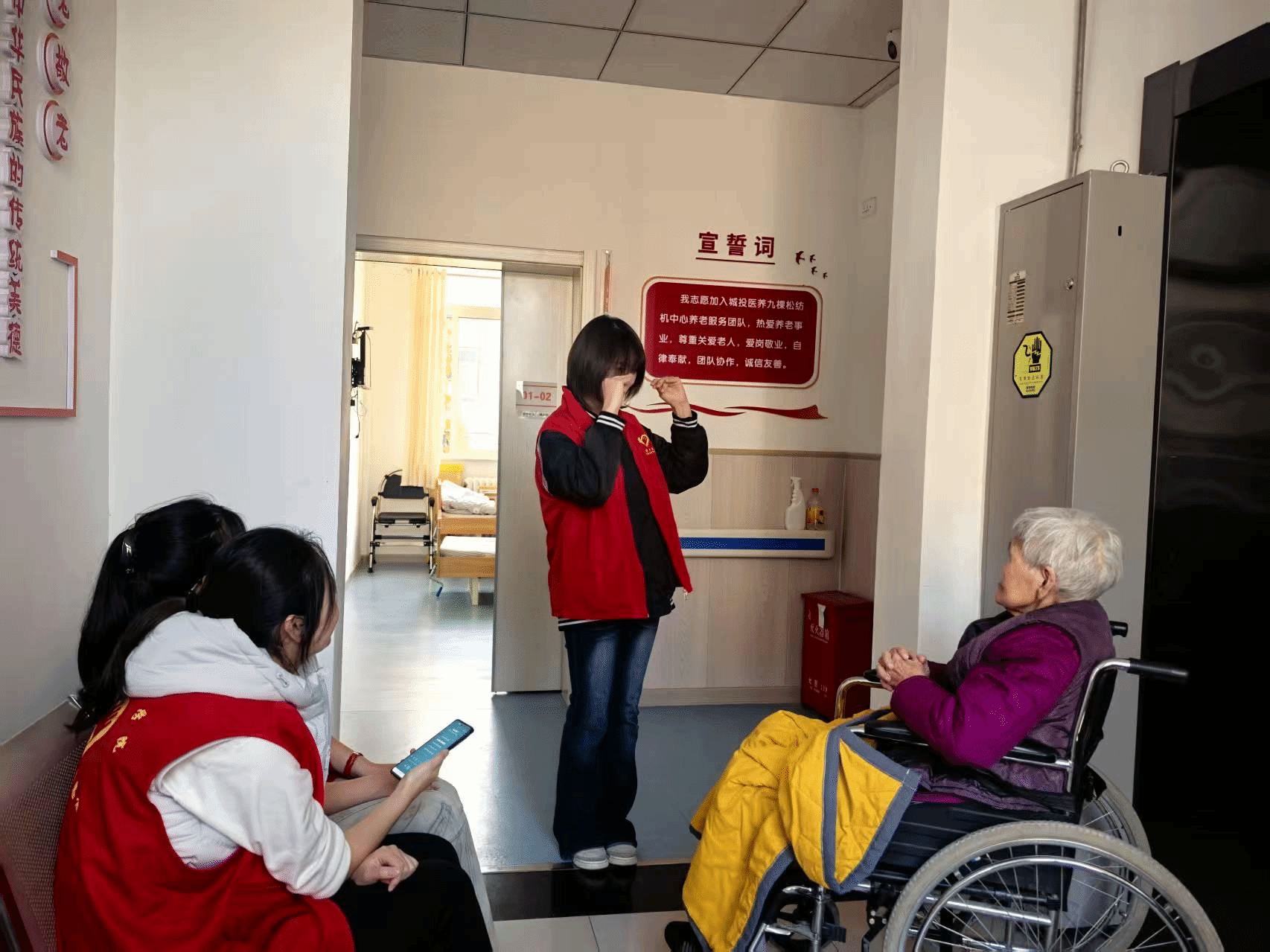活动精准对接老年人的精神慰藉与生活照料需求,内容多元且贴合老人生活场景。志愿者们主动与老人促膝长谈,倾听他们的人生阅历与情感诉求;协助护理人员开展喂饭喂药、房间消杀等护理工作,以娴熟细致的操作传递关爱;老人们的赞许与欢颜,让现场洋溢着温馨氛围。从为老人读报解闷到陪老人在庭院散步,志愿者们全程满怀热忱,那专注的神情与温暖的互动,尽显当代青年的责任与担当。